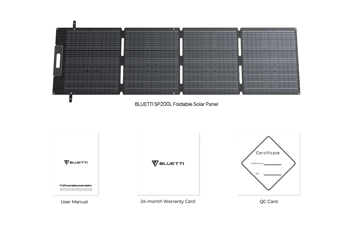 Introducing the BLUETTI SP200L Portable Solar Panel, your ultimate companion for off-grid adventures and sustainable energy solutions. Harness the power of the sun with its impressive 200W solar capacity and up to 23.4% conversion rate, enabling efficient charging of your solar generators while minimizing environmental impact.Whether you're camping in the wilderness, exploring the great outdoors, or preparing for emergencies with limited access to electricity, the BLUETTI SP200L ensures you stay powered up wherever you go!